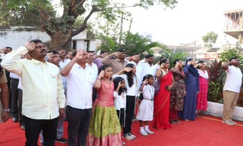 తెలుగు వెలుగు టీవీ - వార్తలు / కొత్తగూడెం : ఎస్పీ కార్యాలయంలో జాతీయ పతాకాన్ని ఆవిష్కరించిన జిల్లా ఎస్పీ రోహిత్ రాజు. 77వ భారత గణతంత్ర దినోత్సవం సందర్భంగా జిల్లా ఎస్పీ కార్యాలయంలో ఘనంగా వేడుకలను నిర్వహించారు. ఈ సందర్భంగా జిల్లా ఎస్పీ రోహిత్ రాజు జాతీయ పతాకాన్ని ఆవిష్కరించారు.జిల్లా ప్రజలు,పోలీసు అధికారులు మరియు సిబ్బందికి 77వ గణతంత్ర దినోత్సవ శుభాకాంక్షలు తెలిపారు.అనంతరం ఎస్పీ మాట్లాడుతూ రాజ్యాంగ స్ఫూర్తికి అనుగుణంగా ప్రతి ఒక్కరూ నడుచుకోవాలని ఆకాంక్షిస్తూ స్వేచ్చ,స్వాతంత్ర్యాల వెనక ఎంతో మంది పోరాటయోదుల త్యాగం దాగి ఉన్నదని గుర్తు చేసారు.మన వంతు భాద్యతగా దేశసేవ కొరకు పాటుపడాలని,పోలీసు అధికారులు సిబ్బంది తమ విధులను భాద్యతాయుతంగా నిర్వహించి పోలీస్ వ్యవస్థకు మంచి పేరు,ప్రతిష్టలు తీసుకురావడానికి కృషి చేయాలని సూచించారు.ఈ కార్యక్రమంలో కొత్తగూడెం డిఎస్పీ రెహమాన్,డీసిఆర్బీ డిఎస్పీ మల్లయ్య స్వామి,ఏఆర్ డిఎస్పీ సత్యనారాయణ,ఎస్బి ఇన్స్పెక్టర్స్ శ్రీనివాస్,జిల్లా కార్యాలయ అధికారులు,సిబ్బంది,ఆర్ఐలు,సీఐలు,ఎస్సైలు,జిల్లా పోలీసు కార్యాలయ అధికారులు,సిబ్బంది పాల్గొన్నారు.
