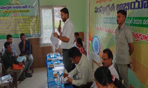 తెలుగు వెలుగు టీవీ - వార్తలు / కొత్తగూడెం : నీతి ఆయోగ్ ఆధ్వర్యంలో అమలవుతున్న సంపూర్ణత అభియాన్ 2.0 లక్ష్యాలను జిల్లా స్థాయిలోను, గుండాల మండలంలోను సమన్వయంతో సాధిద్దామని జిల్లా కలెక్టర్ జితేష్ వి. పాటిల్ అన్నారు. నీతి ఆయోగ్ ఆస్పిరేషనల్ జిల్లా, ఆస్పిరేషనల్ మండలం (ఆకాంక్షిత మండలం) కార్యక్రమంలో భాగంగా గురువారం గుండాల మండల ప్రాథమిక ఆరోగ్య కేంద్రం లో నిర్వహించిన సంపూర్ణత అభియాన్ 2.0 కార్యక్రమంలో జిల్లా కలెక్టర్ ముఖ్య అతిథిగా పాల్గొన్నారు.ఈ సందర్భంగా ముందుగా గుండాల గ్రామ కూడలి నుంచి ప్రాథమిక ఆరోగ్య కేంద్రం వరకు నిర్వహించిన అవగాహన ర్యాలీలో జిల్లా కలెక్టర్ పాల్గొన్నారు. అనంతరం ప్రభుత్వ ఆసుపత్రి ఆవరణలో మొక్కలు నాటారు. సంపూర్ణత అభియాన్ 2.0 క్యాంపెయిన్ను ప్రారంభిస్తూ జిల్లా కలెక్టర్ మాట్లాడుతూ, ఈ క్యాంపెయిన్ జనవరి 28 నుంచి ఏప్రిల్ 14 వరకు నిర్వహించబడుతుందని తెలిపారు. ఈ కార్యక్రమంలో భాగంగా రాబోయే రోజుల్లో జిల్లా వ్యాప్తంగా అన్ని అంగన్వాడీ కేంద్రాల్లో త్రాగునీరు, మరుగుదొడ్ల సదుపాయాలు కల్పిస్తామని చెప్పారు. ప్రతి నెలా అంగన్వాడీ కేంద్రాల్లో నమోదు అయిన పిల్లల ఎత్తు, బరువు కచ్చితంగా కొలిచి నమోదు చేయాలని, పిల్లలను గుర్తించి వారిపై ప్రత్యేక శ్రద్ధ వహించాలని సంబంధిత అధికారులను ఆదేశించారు.అంగన్వాడీ కేంద్రాల్లో నమోదు అయిన 6 నెలల నుంచి 6 సంవత్సరాల వయస్సు గల పిల్లలందరికీ బాలామృతం మరియు ఇతర పోషక ఆహారాన్ని తప్పనిసరిగా అందించాలని సూచించారు.గుండాల మండలంలోని గ్రామ సర్పంచులు తమ పరిధిలోని అంగన్వాడీ కేంద్రాలను సందర్శించి, పిల్లలకు అవసరమైన పోషకాహారం అందేలా తగిన చర్యలు తీసుకోవాలని కోరారు. ఆశ మరియు ఏఎన్ఎంలు వ్యాధి నిర్ధారణ పరీక్షల ద్వారా క్షయ (టీబీ) బాధితులను గుర్తించి, వారికి అవసరమైన చికిత్స అందించడంపై ప్రత్యేక శ్రద్ధ వహించాలని అధికారులకు సూచించారు.జిల్లా పశు వైద్య అధికారులు అన్ని పశువులకు గాలికుంటు వ్యాధి నివారణ టీకాలు వేయాలని ఆదేశించారు. అదే విధంగా గుండాల మండలంలో ఉన్న పశువుల సంఖ్య ఆధారంగా అవసరమైన పశుగ్రాసాన్ని రైతులు సాగు చేయాలని సూచించారు. దీనివల్ల పశువులకు సరిపడా మేత లభిస్తుందని తెలిపారు.ఈ సందర్భంగా సంపూర్ణత అభియాన్ 2.0 పోస్టర్లను జిల్లా కలెక్టర్ ఆవిష్కరించి కార్యక్రమాన్ని అధికారికంగా ప్రారంభించారు.సంపూర్ణత అభియాన్లో జిల్లాను, గుండాల మండలాన్ని ప్రథమ స్థానంలో నిలపడానికి అధికారులు సమష్టిగా కృషి చేయాలని జిల్లా కలెక్టర్ అన్నారు. క్షేత్రస్థాయిలో ఉద్యోగులు, అంగన్వాడీ సిబ్బంది, ఆశ కార్యకర్తలు, ఆరోగ్య కార్యకర్తలు, పంచాయతీ కార్యదర్శులు, ఉపాధ్యాయులు సమన్వయంతో పని చేసి అవసరమైన చర్యలు చేపట్టాలని సూచించారు.ఈ కార్యక్రమ