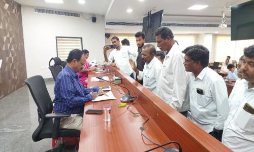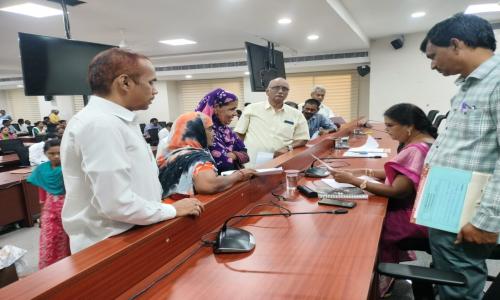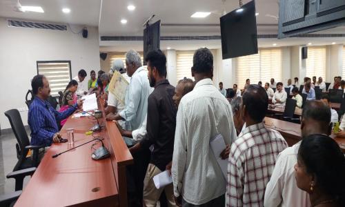 తెలుగు వెలుగు టీవీ - వార్తలు / కొత్తగూడెం : ప్రజావాణి కార్యక్రమంలో వచ్చిన ప్రతి దరఖాస్తును క్షుణ్ణంగా పరిశీలించి వాటి పరిష్కారానికి చర్యలు తీసుకోవాలని అదనపు కలెక్టర్ డి వేణుగోపాల్ మరియు స్థానిక సంస్థల అదనపు కలెక్టర్ విద్యా చందన సంబంధిత అధికారులను ఆదేశించారు. సోమవారం ఐడిఓసి కార్యాలయ సమావేశ మందిరంలో అన్ని శాఖల అధికారులతో ప్రజావాణి నిర్వహించి జిల్లాలోని వివిధ ప్రాంతాల నుండి వచ్చిన ప్రజల సమస్యల పరిష్కారానికి సంబంధిత అధికారులకు ఎండార్స్ చేశారు. ఈ సందర్భంగా దరఖాస్తు చేసిన అభ్యర్థులను వివరాలను అడిగి తెలుసుకొని సమస్యల పరిష్కారానికి చర్యలు చేపట్టాలని శాఖల వారీగా అధికారులను ఆదేశించారు. గ్రీవెన్స్ లో కొన్ని ఫిర్యాదులు.... జూలూరుపాడు మండలం కాకర్ల రెవెన్యూ గ్రామంలో నివాసం ఉంటున్న వంగవీటి ప్రేమ కన్యాకుమారి సర్వేనెంబర్ 115/ఓ 1 లో ఎకరం ఆరుకుంటల భూమి కి డిజిటల్ పట్టాదారు పాసుపుస్తకం కలిగి ఉన్నానని, సదరు భూమిపై అన్ని హక్కులు ఉన్నప్పటికీ పూణెం సూరయ్య s/o ముత్తయ్య అను వ్యక్తి తన అనుచరులతో మా భూమిని ఆక్రమించేందుకు ప్రయత్నించగా 2021 అవసరంలో పోలీసుల రక్షణ కోరుతూ కోర్టును ఆశ్రయించగా భద్రాచలం మొబైల్ కోర్టు మరియు హైకోర్టు వారు తమకు అనుకూలంగా తరువులు జారీ చేసినప్పటికీ సదరు వ్యక్తి తన అనుచరులతో వ్యవసాయ పనులు చేస్తున్న మనుమడు చెక్కి లాల సందీప్ మరియు కూలీలను కర్రలతో కొట్టి దౌర్జన్యంగా బయటకు వెళ్లగొట్టారని కావున సదరు వ్యక్తిపై చట్టపర్తి చర్యలు తీసుకొని న్యాయం చేయగలరని చేసిన దరఖాస్తును పరిశీలించి తగు చర్యలు నిమిత్తం కొత్తగూడెం ఆర్డీవో మధుకు ఎండార్స్ చేశారు. సుజాతనగర్ మండలం సర్వారం, కోయగూడెంలో నివాసం ఉంటున్న జరుపుల లక్ష్మణ్ s/o దేర్లా కు లక్ష్మీదేవి పల్లి మండలం కారుకొండ పరిధిలో ఉన్న వ్యవసాయ భూముల 2006వ సంవత్సరంలో ప్రభుత్వం వారు దుమ్ముగూడెం సీతారామ ప్రాజెక్ట్ కొరకు పెద్ద సైజు కాలువ తన పొలం గుండా త్రవ్వేరని దానికి దాదాపు నాలుగు ఎకరాల భూమి కోల్పోయానని, కానీ కాలువలో నీళ్లు రానందున కాలువ పూడ్చాలంటే పెద్ద మొత్తంలో డబ్బు ఖర్చు మరియు మట్టి అవసరం ఉన్నందున ప్రభుత్వం వారు నా భూమిలో ఉన్న కాలువను పూడ్చాలని చేసిన దరఖాస్తును పరిశీలించి తగు చర్యలు నిమిత్తం సుజాతనగర్ తాసిల్దార్ కు ఎండార్స్ చేయడం జరిగింది. ఇల్లందు మండలం పూబెల్లి గ్రామంలో నివాసం ఉంటున్న రైతులు తాము వ్యవసాయం వ్యవసాయం చేసుకునేందుకు వీలుగా వ్యవసాయ భూముల్లో బోర్ వేసుకున్నాం కానీ విద్యుత్ సౌకర్యం లేక ఎన్నో ఇబ్బందులకు గురవుతున్నామని, కావున ఆర్థికంగా వెనకబడినటువంటి గిరిజనులు వ్యవసాయం చేయుటకు ఉచిత విద్యుత్ మంజూరు చేయించగలరని చేసిన దరఖాస్తును పరిశీలించి తగు చర్యల న