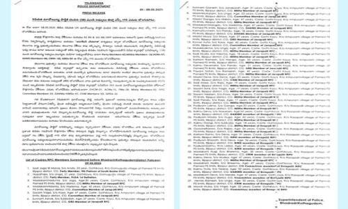 తెలుగు వెలుగు టీవీ - వార్తలు / కొత్తగూడెం : ఈ రోజు అనగా 09.05.2025 తేదీన నిషేదిత CPI మావోయిస్టు పార్టీకి చెందిన (38) మంది సభ్యులు జిల్లా ఎస్పీ ఎదుట లొంగిపోవడం జరిగింది. భద్రాద్రి కొత్తగూడెం జిల్లా పోలీసులు మరియు 81BN & 141 BN CRPF అధికారులు ఆదివాసీ ప్రజల అభివృద్ధి, సంక్షేమం కొరకు నిర్వహిస్తున్న కార్యక్రమాలు మరియు "ఆపరేషన్ చేయూలో" కార్యక్రమం ద్వారా లొంగిపోయిన మావోయిస్టు సభ్యులకు తెలంగాణ రాష్ట్ర ప్రభుత్వంమరియు తెలంగాణ పోలీసు శాఖ కల్పిస్తున్న సౌకర్యాల గురించి తెలుసుకుని, నక్సలిజాన్ని విడిచిపెట్టి ఇకపై తాము కూడా కుటుంబ సభ్యులతో కలిసి నిర్మలమైన జీవితం గడపాలని నిర్ణయించుకొని వివిధ క్యాడర్లలో పనిచేస్తున్న (38) మంది మావోయిస్టు సభ్యులు, ముగ్గురు మహిళా సభ్యులతో పటు అనగా Party Members-02, Militia Members-16,VCMs-07, KAMS Members-06, CNM-03, GRD5-04 ఈ రోజు ఎస్పీ ముందు లొంగిపోయారు