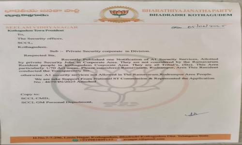 తెలుగు వెలుగు టీవీ - వార్తలు / కొత్తగూడెం : సింగరేణిలో నిర్వహిస్తున్న ప్రైవేట్ సెక్యూరిటీ నియామకాలలో రామవరం, రుద్రంపూర్ ప్రాంత వాసులను కూడా పరిగణలోనికి తీసుకోవాలి సింగరేణి సెక్యూరిటీ జిఎం సత్యనారాయణ ను కలిసిన కొత్తగూడెం పట్టణ అధ్యక్షుడు శీలం విద్యాసాగర్ ఈ సందర్భంగా విద్యాసాగర్ మాట్లాడుతూ కొన్ని దశాబ్దాలుగా రామవరం, రుద్రంపూర్ ప్రాంతంలో నివసిస్తున్న ప్రాంతవాసులకు కూడా అవకాశం కల్పించాలని వినతి పత్రం ఇవ్వడం జరిగింది ఈ విషయాన్ని సింగరేణి సిఎన్ఎండి మరియు నేషనల్ ఎస్టీ కమిషన్ మెంబర్ హుస్సేన్ నాయక్ కూడా తెలియ చేయడం జరిగింది అని అన్నారు సింగరేణి భూమి పుత్రులుగా ఐదు కిలోమీటర్ల పరిధిలో ఉన్న అందరికీ అవకాశం కల్పించాలని అన్నారు ఈ కార్యక్రమంలో పట్టణ ప్రధాన కార్యదర్శి గుంపుల మహేష్,కృష్ణారెడ్డి, మాజీ పట్టణ అధ్యక్షుడు ఎనుమూరి శివ కృష్ణ, పట్టణ ఉపాధ్యక్షుడు రాంబాబు నాయక్ మరియు రాజు పాల్గొన్నారు.