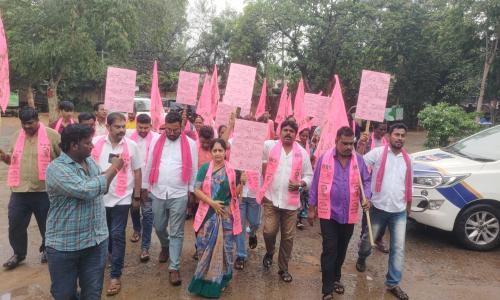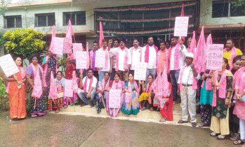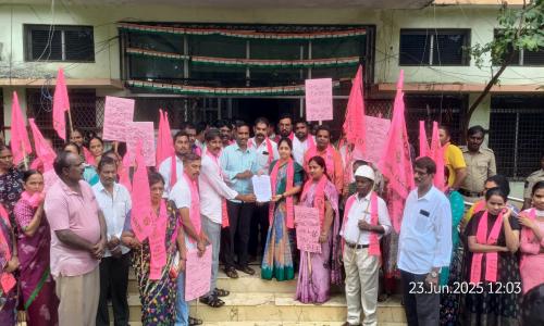తెలుగు వెలుగు టీవీ - వార్తలు / కొత్తగూడెం : భారత రాష్ట్ర సమితి పార్టీ జిల్లా అధ్యక్షుడు రేగా కాంతారావు ఆదేశాలు, మాజీ మంత్రి వనమా వెంకటేశ్వరరావు సూచన మేరకు సోమవారం కొత్తగూడెం కార్పొరేషన్ కార్యాలయం ఎదుట బీఆర్ఎస్ పార్టీ ఆధ్వర్యంలో ధర్నా నిర్వహించారు. కొత్తగూడెం మున్సిపాలిటీ మాజీ చైర్ పర్సన్ కాపు సీతాలక్ష్మి ఆధ్వర్యంలో నిరసన చేపట్టారు. అనంతరం కొత్తగూడెం కార్పొరేషన్ మేనేజర్ ప్రసాద్ కు సమస్యలతో పోయిన వినతిపత్రం అందజేశారు. ఈ నిరసన ధర్నాలో సీతా లక్ష్మీ మాట్లాడుతూ.. గత అసెంబ్లీ ఎన్నికల్లో కాంగ్రెస్ పార్టీ ప్రజలకు ఇచ్చిన హామీలను తక్షణమే అమలు చేయాలని డిమాండ్ చేశారు. కొత్తగూడెం కార్పొరేషన్ పరిధిలో పారిశుద్ధ్యన్ని మెరుగుపరచాలని అన్నారు. వెంటనే దోమల నివారణకు దోమల మందు పిచికారి చేయించాలని సూచించారు. కొత్తగూడెంలో అర్హులైన పేదలందరికీ తక్షణమే ఇందిరమ్మ ఇల్లు మంజూరు చేయాలని డిమాండ్ చేశారు. కొత్తగూడెం పరిధిలో ఇందిరమ్మ ఇళ్ల లబ్ధిదారుల జాబితాను నోటీస్ బోర్డులో ప్రదర్శించాలని కోరారు. అన్ని వీధుల్లో వీధి దీపాలు ఏర్పాటు చేయాలన్నారు. డ్రైనేజీలో పేరుకుపోయిన వ్యర్ధాలను వెంటనే తొలగించాలని చెప్పారు. మిషన్ భగీరథ పథకం కోసం ఎక్కడికక్కడ పైప్ లైన్ ల కోసం తవ్విన గుంటలను పూడ్చి రోడ్లకు మరమ్మతులు చేపట్టాలి. తవ్విన గుంటల వల్ల రోడ్డు ప్రమాదాలు జరుగుతున్నాయని తెలిపారు. పచ్చని చెట్లు ప్రగతికి మెట్లు అనే నినాదాన్ని సీఎం రేవంత్ రెడ్డి మరిచారని విమర్శించారు. హరితహారం కార్యక్రమంలో భాగంగా మొక్కలు నాటే కార్యక్రమాన్ని ప్రారంభించాలని తెలిపారు.