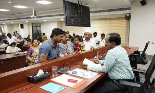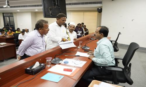 తెలుగు వెలుగు టీవీ - వార్తలు / కొత్తగూడెం : ప్రజావాణి కార్యక్రమంలో వచ్చిన ప్రతి దరఖాస్తు క్షుణ్ణంగా పరిశీలించి పరిష్కారానికి చర్యలు తీసుకోవాలని అదనపు కలెక్టర్ వేణుగోపాల్ అధికారులను ఆదేశించారు. సోమవారం ఐడిఓసి కార్యాలయ సమావేశ మందిరంలో ప్రజావాణి నిర్వహించి జిల్లాలోని వివిధ ప్రాంతాల నుండి వచ్చిన ప్రజల సమస్యల నుండి దరఖాస్తులు స్వీకరించి పరిష్కారానికి చర్యలు తీసుకోవాలని సంబంధిత అధికారులకు ఎండార్స్ చేశారు...... ప్రజావాణి లో వచ్చిన ఫిర్యాదులు కొన్ని. సుజాతనగర్ మండల పరిధిలోని వేపలగడ్డ గ్రామం వద్ద నిర్మించిన రైల్వే ఓవర్ బ్రిడ్జి కి సంబంధించి 0.7 కుంటల భూమి కోల్పోయిన చెట్టుపల్లి ప్రభాకర్ రావు అనే రైతు తాను కోల్పోయిన భూమికి నష్టపరిహారం ఇప్పటివరకు అందలేదని, కావున త్వరితగతిన నష్టపరిహారం ఇప్పించగలరని చేసిన దరఖాస్తును పరిశీలించి తగు చర్యలు నిమిత్తం కొత్తగూడెం ఆర్డీవో కు ఎండార్స్ చేయడం జరిగింది. కొత్తగూడెం ఎన్కె నగర్ లో నివాసం ఉంటున్న సాకా ఠాగూర్ s/o పుష్పరాజు గత సంవత్సరం ఇంజనీరింగ్ విద్యను అభ్యసించడానికి కే ఎల్ ఆర్ కళాశాల నందు జాయిన్ అయ్యానని, కానీ అనారోగ్య కారణం చేత కళాశాలకు వెళ్లలేకపోయానని, తన ఒరిజినల్ సర్టిఫికెట్ల కోసం కళాశాలలను సంప్రదించగా మొత్తం ఫీజు చెల్లిస్తేనే తనకు సర్టిఫికెట్లు ఇస్తామని తెలియజేశారని, తన తల్లిదండ్రులు కూలి పని చేస్తూ జీవనం సాగిస్తున్నామని కావున తనకు తన యొక్క ఒరిజినల్ సర్టిఫికెట్లను ఇప్పించవలసిందిగా చేసిన దరఖాస్తును పరిశీలించి తగు చర్యలు నిమిత్తం డి సెక్షన్ సూపర్డెంట్ కు ఎండార్స్ చేశారు.