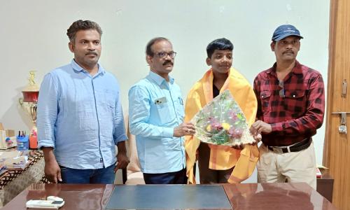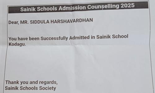 తెలుగు వెలుగు టీవీ - వార్తలు / కొత్తగూడెం : స్టార్ చిల్డ్రన్ స్కూల్ విద్యార్థి ప్రతిభకు దేశస్థాయి లో గుర్తింపు కొడగు సైనిక్ స్కూల్, కర్ణాటక లో ప్రవేశం డి ఈ ఓ సహా పలువురి అభినందనలు పాల్వంచ విద్యార్థి జీవితంలో ఒక మైలురాయి విజయాన్ని నమోదు చేస్తూ భద్రాద్రి కొత్తగూడెం జిల్లా పాల్వంచ పట్టణంలోని స్టార్ చిల్డ్రన్ హైస్కూల్ విద్యార్థి సిద్దుల హర్షవర్ధన్ దేశంలోనే ప్రతిష్టాత్మకమైన రక్షణ శాఖ ఆధ్వర్యంలో నిర్వహించే విద్యా సంస్థలలో ఒకటైన కొడగు సైనిక్ స్కూల్,కర్ణాటక లో 9వ తరగతిలో ప్రవేశం పొంది జిల్లాకు గర్వకారణంగా నిలిచాడు. ఈ సందర్భంగా గురువారం ఏర్పాటు చేసిన ఒక కార్యక్రమంలో జిల్లా విద్యా శాఖ అధికారి ఎం వెంకటేశ్వర చారి, విద్యార్థిని అభినందిస్తూ హర్షవర్ధన్ సాధించినది ఒక అసాధారణ ఘనత అని , ఈ విజయం కేవలం విద్యకు సంబంధించినది మాత్రమే కాదని,దేశ సేవకు పునాదులు వేయడంలో కీలకమని పేర్కొన్నారు. గ్రామీణ నేపథ్యం గల విద్యార్థులు కూడా క్రమశిక్షణ, నిరంతర కృషి, అంకిత భావం ఉంటే ఎంతటి ఘన విజయాన్ని అయినా సాధించవచ్చునని హర్షవర్ధన్ నిరూపించాడని, ఈ విజయం వెనుక తల్లిదండ్రులు, ఉపాధ్యాయుల కృషి ఎంతో ఉన్నదని అభినందించినారు. ఈ కార్యక్రమంలో పాఠశాల కరస్పాండెంట్ జి భాస్కరరావు, ప్రిన్సిపాల్ జి శ్రీనివాస్ రెడ్డి, పాఠశాల సిబ్బంది, సహ విద్యార్థులు హర్షవర్ధన్ ప్రతిభను అభినందిస్తూ ఘనంగా సన్మానించారు.