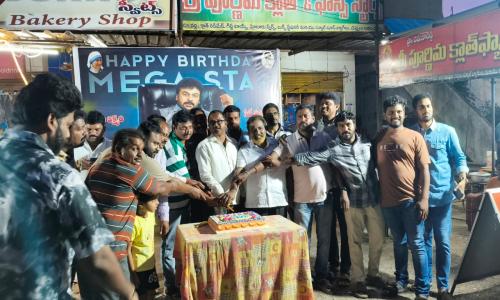 తెలుగు వెలుగు టీవీ - వార్తలు / సుజాతనగర్ : భద్రాద్రి కొత్తగూడెం జిల్లా సుజాతనగర్ మున్సిపాలిటీ కేంద్రం మెయిన్ రోడ్డు ప్రక్కన మెగాస్టార్ చిరంజీవి 70వ పుట్టినరోజు వేడుకలను ఎంతో ఘనంగా అభిమాన సంఘం ఆధ్వర్యంలో జరుపుకున్నారు. మెగాస్టార్ 70వ జన్మదినోత్సవాన్ని పురస్కరించుకొని ప్రతి ఒక్కరు ఆయన అభిమానులు ఒకరికి ఒకరు అన్నయ్య పుట్టినరోజు శుభాకాంక్షలు తెలియజేసుకుంటూ తెలుగు సినిమాకు చేసిన సేవలు అందించిన వినోదం ఎప్పటికీ మర్చిపోలేనని అనుకుంటూ చిరంజీవి చూపించిన సేవాభావం మమకారం స్ఫూర్తిదాయకమని ఆయన ఆరోగ్యం ఆయుస్సు కలగాలని కోరుకుంటూ భవిష్యత్తులో మరెన్నో విజయాలు సాధించాలని కోరుకుంటూ పలువురు హృదయపూర్వక శుభాకాంక్షలు తెలుపుకున్నారు, తెలియజేశారు .ఈ కార్యక్రమంలో అభిమానులు పెద్ద ఎత్తున పాల్గొని చిరంజీవి అన్నయ్యకు భారీ కేక్ కట్ చేసి లడ్డూలు స్వీట్స్ పంచి అందరికీ నోరు తీపి చేసుకున్నారు.