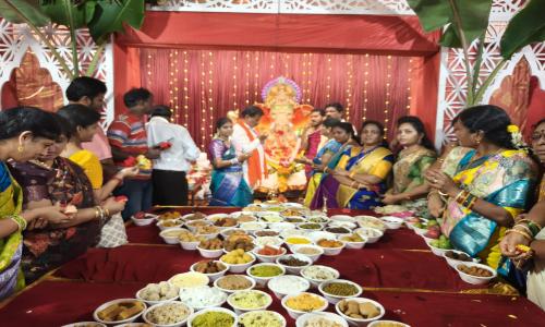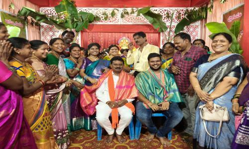 తెలుగు వెలుగు టీవీ - వార్తలు / కొత్తగూడెం : పాల్వంచ వర్తక సంఘం ఆధ్వర్యంలో జరుగుతున్న గణేష్ నవరాత్రులు సోమవారం ఆరవ రోజుకు చేరుకున్నాయి. ఈ సందర్భంగా స్వామివారికి 108 ప్రసాదాలు మరియు స్వామివారి పారాయణ చేపట్టారు. ఈ కార్యక్రమానికి భద్రాద్రి కొత్తగూడెం జిల్లా ఆర్యవైశ్య మహాసభ అధ్యక్షులు ధారా రమేష్ గారు ముఖ్య అతిథిగా విచ్చేశారు. ధారా రమేష్ కి ఉత్సా కమిటీ సభ్యులు ఘనంగా సత్కరించారు. ఈ కార్యక్రమంలో వర్తక సంఘం కన్వీనర్, ఉత్సవ కమిటీ అధ్యక్షులు చలువాది ప్రకాష్, ఉత్సవ కమిటీ మహిళా అధ్యక్షురాలు పెండ్యాల రోజా లక్ష్మి, ఉత్సవ కమిటీ ప్రధాన కార్యదర్శి గూడెపు శ్రీనివాస్, జిల్లా ఉపాధ్యక్షులు ధారా నరసింహారావు మరియు పాల్వంచ మహిళలు అధిక సంఖ్యలో పాల్గొన్నారు.