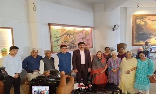 తెలుగు వెలుగు టీవీ - వార్తలు / కొత్తగూడెం : సింగరేణి మేడిపల్లి ఓపెన్ కాస్ట్ గని తవ్వకంలో లభ్యమైన 110 లక్షల సంవత్సరాల నాటి స్టెగోడాన్ జాతి ఏనుగు దంతాల అవశేషాలు, డైనోసార్ కాలానికి చెందిన శిలాజ కలపను పొందుపరుస్తూ బిర్లా సైన్స్ సెంటర్ లో ఏర్పాటు చేసిన సింగరేణి పెవిలియన్ ఈరోజు సింగరేణి సీఎండీ ఎన్.బలరామ్ ప్రారంభించారు. గోదావరి పరివాహక ప్రాంతంలో 110 లక్షల సంవత్సరాల క్రితం సంచరించిన అనంతరం అంతరించిపోయిన స్టెగోడాన్ జాతికి చెందిన ఏనుగు అవశేషాలుగా శాస్త్రజ్ఞులు గుర్తించారని, చరిత్ర పూర్వ యుగానికి చెందిన ఈ అవశేషాలను ప్రజలు, విద్యార్థులు వీక్షించడానికి అనువుగా ప్రతిష్టాత్మకమైన బిర్లా సైన్స్ సెంటర్లో ఏర్పాటు చేయడం ఎంతో ఆనందంగా ఉందని సీఎండీ ఎన్.బలరామ్ పేర్కొన్నారు.