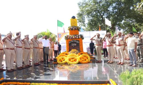 తెలుగు వెలుగు టీవీ - వార్తలు / కొత్తగూడెం : విధి నిర్వహణలో ప్రాణాలు అర్పించిన అమరవీరుల త్యాగాలు మరువలేనివి: ఎస్పీ రోహిత్ రాజు ఐపిఎస్. విధి నిర్వహణలో దేశ రక్షణ కోసం ప్రాణాలు కోల్పోయిన పోలీస్ అమరవీరుల సంస్మరణ దినోత్సవం (ఫ్లాగ్ డే) ను జిల్లా పోలీస్ హెడ్ క్వార్టర్స్ పరేడ్ గ్రౌండ్లో ఘనంగా నిర్వహించిన జిల్లా పోలీసులుఈ రోజు హేమచంద్రాపురం నందు గల జిల్లా పోలీస్ హెడ్ క్వార్టర్స్ నందు పోలీస్ అమరవీరుల దినోత్సవం(ఫ్లాగ్ డే) ఘనంగా నిర్వహించడం జరిగింది.ఈ కార్యక్రమానికి ముఖ్యఅతిథిగా జిల్లా కలెక్టర్ జితేష్.వి.పాటిల్ ఐఏఎస్ పాల్గొన్నారు.జిల్లా ఎస్పీ రోహిత్ రాజు ఐపీఎస్ కలెక్టర్ గారిని ఆహ్వానించిన అనంతరం పెరేడ్ కమాండర్ లాల్ బాబు ఆధ్వర్యంలోని సాయుధ దళ పోలీసులచే గౌరవ వందనాన్ని స్వీకరించారు.అనంతరం కలెక్టర్ గారు మాట్లాడుతూ శాంతి భద్రతల పరిరక్షణలో భాగంగా సంఘవిద్రోహశక్తులతో పోరాడి చనిపోయిన పోలీస్ పోలీసు అమరవీరుల త్యాగం భావితరాలకు స్ఫూర్తిగా నిలుస్తుందని చెప్పారు.ప్రజల సంరక్షణ కోసం పోలీస్ వ్యవస్థ నిరంతరం పనిచేస్తుందని,శాంతిభద్రతల పరిరక్షణతో పాటు దేశ అంతర్గత భద్రత,ప్రజల రక్షణ,ప్రభుత్వ ఆస్తుల పరిరక్షణ ఇలా ప్రతి సందర్భాల్లోనూ పోలీస్ వ్యవస్థ చాలా కీలకంగా పని చేస్తుందన్నారు.ఎలాంటి అవాంఛనీయ సంఘటనలు జరిగినా వెంటనే స్పందించి ప్రజలకు ప్రత్యక్షంగా సేవలందించడంలో ఎల్లప్పుడూ పోలీస్ శాఖ ముందు ఉంటుందని అన్నారు.శాంతిభద్రతలు పటిష్టంగా ఉన్నప్పుడే రాష్ట్రం అభివృద్ధి చెందుతుందని,మన రాష్ట్రం ఇంత అభివృద్ధి చెందడానికి పోలీస్ వ్యవస్థ పటిష్టంగా ఉండటమే ప్రధాన కారణమని అన్నారు.అనంతరం ఎస్పీ గారు మాట్లాడుతూ పోలీస్ అమరవీరుల సంస్మరణ దినోత్సవం సందర్భంగా అమరులైన పోలీసులకు ఈ రోజు శ్రద్ధాంజలి ఘటించడం జరుగుతుందని తెలిపారు.ప్రపంచమంతా నిద్రలో ఉంటే పోలీసు మేల్కొని,శాంతిభద్రతల పరిరక్షణ నిమిత్తం నిరంతరం కాపలా కాస్తుంటారని,ఎండ,వాన,పగలు,రాత్రి అనే తేడా లేకుండా కుటుంబంతో కలిసి జరుపుకునే పండగల్ని కూడా త్యజించి,ప్రజల కోసం శాంతి భద్రతల పరిరక్షణలో ప్రాణాలని సైతం పణంగా పెట్టి సంఘ విద్రోహశక్తులతో పోరాడి వీరమరణం పొందిన పోలీసులు చేసిన త్యాగానికి సానుభూతి,గౌరవం చూపించడం మనందరి బాధ్యత అని తెలిపారు.అక్టోబర్ 21 అంటే పోలీసు అమరవీరుల సంస్మరణ దినోత్సవం.1959లో చైనా దురాక్రమణను భారత సైన్యం సమర్థంగా తిప్పికొట్టిన రోజు ఇదని తెలిపారు.ఈ సమరంలో 10 మంది జవాన్లు అమరులయ్యారని,1959 అక్టోబర్ 21న లడఖ్ సరిహద్దులోని అక్షయచిన్ ప్రాంతంలో సుమారుగా 16,000 అడుగుల ఎత్తులో తీవ్రమైన చలిలో కాపలా కాస్తున్న సిఆర్పిఎఫ్ జవాన్లు,దురాక్రమణకు ప్రయత్నించిన చైనా సైన్యంతో వీరోచితంగా పోర