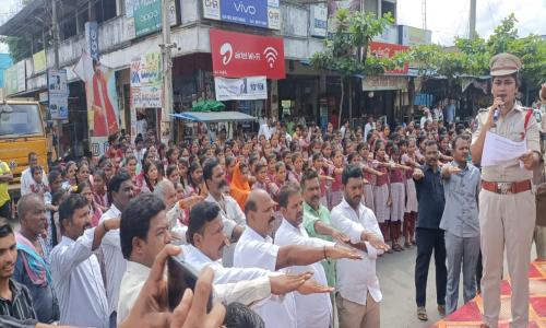 తెలుగు వెలుగు టీవీ - వార్తలు / కొత్తగూడెం : సుజాతనగర్ సెంటర్లో " చైతన్యం, డ్రగ్స్ పై యుద్ధం" అనే ప్రోగ్రాంలో భాగంగా కొత్తగూడెం జిల్లా ఎస్పీ రోహిత్ రాజు ఐపిఎస్ ఆదేశాలతో అవగాహనా కార్యక్రమం ఏర్పాటు చేయడం జరిగింది.ఈ కార్యక్రమానికి ముఖ్యఅతిథిగా కొత్తగూడెం డిఎస్పి అబ్దుల్ రెహమాన్ పాల్గొన్నారు.చుంచుపల్లి సిఐ వెంకటేశ్వర్లు,సుజాతనగర్ ఎస్సై రమాదేవి , సిబ్బంది పాల్గొన్నారు.ఇట్టి ప్రోగ్రాంలో అబ్దుల్ కలాం కాలేజ్,ధన్వంతర కాలేజ్ ,శ్రీ ఫార్మసి కాలేజ్ మరియు సుజాతనగర్ హైస్కూల్ కు చెందిన స్టూడెంట్స్,అదే విధంగా సుజాతనగర్ మండలానికి చెందిన రాజకీయ నాయకులు, మీడియా మరియు ఇతర పబ్లిక్ మొత్తం దాదాపు 700 మంది పాల్గొన్నారు. డ్రగ్స్ రహిత జిల్లాగా తీర్చిదిద్దడానికి ఈ నెల 15వ తారీకు నుండి వచ్చే నెల 15వ తారీకు వరకు ప్రతిరోజు చేపట్టే చైతన్యo ప్రోగ్రాంలో భాగంగా జనాలకు డ్రగ్స్ గురించి అవగాహన కలిగించడానికి ఈ కార్యక్రమాన్ని నిర్వహించడం జరుగుతుందని డిఎస్పీ రెహమాన్ అన్నారు. డ్రగ్స్ అమ్మకం,రవాణా,కలిగి ఉండడం,సేవించడం,కొనడం చట్టరీత్యా నేరమని,ఆఁ విధంగా ఎవరైనా పట్టుబడితే అట్టి వారిపై కఠిన చర్యలు తీసుకోవడం జరుగుతుందని తెలిపారు. అనంతరం ఈ కార్యక్రమంలో పాల్గొన్న అందరూ డ్రగ్స్ కు వ్యతిరేకంగా పోరాడుతామని ప్రతిజ్ఞ చేశారు.