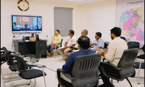 తెలుగు వెలుగు టీవీ - వార్తలు / కొత్తగూడెం : సోమవారం హైద్రాబాద్ డాక్టర్ బిఆర్ అంబేద్కర్ సెక్రటేరియట్ నుండి రాష్ట్రంలోని అన్ని జిల్లాల కలెక్టర్లు,పౌర సరఫరాల, సహకార,సంబంధిత అధికారులతో ధాన్యం,కాటన్, సోయా, కొనుగోళ్ల కేంద్రాల నిర్వహణ తదితర అంశాలపై రాష్ట్ర పౌర సరఫరా శాఖ మంత్రి ఉత్తమ్ కుమార్ రెడ్డి, వ్యవసాయ శాఖ మంత్రి తుమ్మల నాగేశ్వరరావు, ప్రభుత్వ ప్రధాన కార్యదర్శి రామకృష్ణారావు, లు వీడియో కాన్ఫరెన్స్ నిర్వహించారు,జిల్లా కలెక్టర్ క్యాంపు కార్యాలయంనుండి జిల్లా కలెక్టర్ జితేష్ వి. పాటిల్ అదనపు కలెక్టర్ డి. వేణుగోపాల్, సంబంధిత అధికారులతో కలిసి పాల్గొన్నారు,ఈ సందర్భంగా మంత్రులు మాట్లాడుతూ రాష్ట్రవ్యాప్తంగా ధాన్యం, పత్తి, సోయా, తదితర పంటల కొనుగోళ్ల కేంద్రాల నిర్వహణలో రైతులకు ఎలాంటి ఇబ్బందులు లేకుండా అన్ని వసతులు కల్పిస్తూ చర్యలు తీసుకోవాలని, వెంటనే కేంద్రాలను ప్రారంభించాలని, కొనుగోలు చేసిన ధాన్యాన్ని వెంట వెంటనే తరలించాలని, వాతావరణ పరిస్థితులను రైతులకు తెలియజేస్తూ అప్రమత్తంగా ఉంచాలని, కేంద్రాలలో ప్యాడీ క్లీనర్స్, మాచర్ మిషన్, మిషనరీస్, గన్ని సంచులు, తార్పాలిన్లు, లారీలను సిద్ధంగా ఉంచుకోవాలని, సూచించారు,వచ్చే మూడు నాలుగు వారాలలో అప్రమత్తంగా ఉండాలని తెలిపారు, మిల్లర్లు, కాంట్రాక్టర్స్, హమాలీలు, అంశాలపై ఎలాంటి ఇబ్బందులు లేకుండా ముందస్తు చర్యలు తీసుకోవాలని అన్నారు, పూర్తిస్థాయిలో అన్ని విభాగాలు సమన్వయంతో కలిసి పనిచేసే ధాన్యం సేకరణ కొనుగోళ్ల విజయవంతంగా నిర్వహించాలని తెలిపారు,వీడియో కాన్ఫరెన్స్ అనంతరం సంబంధిత అధికారులతో జిల్లా కలెక్టర్ జితేష్ వి పాటిల్ మాట్లాడుతూ జిల్లాలో రైతులకు సంబంధించిన ఎలాంటి ఇబ్బందులు లేకుండా చర్యలు తీసుకోవాలని ధాన్యం కొనుగోళ్ల కేంద్రాల నిర్వహణలో నిర్లక్ష్యం వహిస్తే కఠిన చర్యలు తీసుకోవడం జరుగుతుందని ఆయన హెచ్చరించారు,ఈ వీడియో కాన్ఫరెన్స్ లో డిఆర్డిఓ విద్యా చందన, వ్యవసాయ శాఖ అధికారి బాబురావు, సహకార శాఖ అధికారి శ్రీనివాసరావు, డిఎం సివిల్ సప్లై త్రినాధ్ బాబు , మార్కెటింగ్ అధికారి నరేందర్ తదితరులు పాల్గొన్నారు.