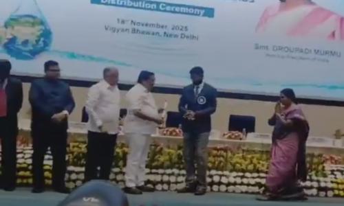 తెలుగు వెలుగు టీవీ - వార్తలు / కొత్తగూడెం : కేంద్రం ప్రవేశపెట్టిన 'జల్ సంచయ్ జన్ భాగీదారీ' కార్యక్రమంలో ప్రతిభ కనబరిచిన భద్రాద్రి కొత్తగూడెం జిల్లా కలెక్టర్ జితేశ్ వీ పాటిల్ మంగళవారం ఢిల్లీలో అవార్డు అందుకున్నారు. జిల్లాలో చేపట్టిన ఇంకుడు గుంతల నిర్మాణాలు, నీటి సంరక్షణ చర్యలకు ఈ అవార్డు దక్కింది. ఏడాదిలో మూడు అవార్డులు అందుకున్న కలెక్టర్కు జిల్లా అధికారులు అభినందనలు తెలుపుతున్నారు.