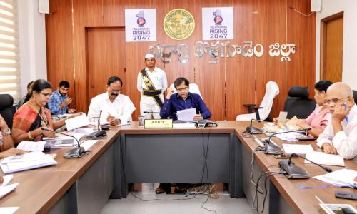 తెలుగు వెలుగు టీవీ - వార్తలు / కొత్తగూడెం : జిల్లాలో ప్రజా పాలన ప్రగతి ప్రణాళికలో భాగంగా చేపట్టనున్న 99 రోజుల కార్యాచరణను సమర్థవంతంగా, సమన్వయంతో అమలు చేసి విజయవంతం చేయాలని జిల్లా కలెక్టర్ అంకిత్ అధికారులను ఆదేశించారు. బుధవారం ఐడీఓసీ కార్యాలయం సమావేశ మందిరంలో అదనపు కలెక్టర్ వేణుగోపాల్ తో కలిసి ముందుగా జిల్లా అధికారులతో సమగ్ర దిశానిర్దేశం నిర్వహించారు. అనంతరం జిల్లా అధికారులు, ఎంపీడీవోలు, తహసీల్దార్లు, ఎంపీఓలు, మున్సిపల్ కమిషనర్లు, వార్డు అధికారులు తదితరులతో వీడియో కాన్ఫరెన్స్ ద్వారా సమీక్ష సమావేశం నిర్వహించారు.ఈ సందర్భంగా కలెక్టర్ మాట్లాడుతూ, మార్చి 6 నుండి జూన్ 12 వరకు వివిధ అంశాలపై ప్రత్యేక కార్యక్రమాలు నిర్వహించబడతాయని తెలిపారు. మార్చి 6 నుండి మార్చి 15 వరకు పరిసరాల పరిశుభ్రత, ప్రభుత్వ కార్యాలయాలలో ఫైళ్ల పరిష్కరణ అంశంపై ప్రత్యేక డ్రైవ్ చేపట్టనున్నట్లు తెలిపారు. కార్యాలయాల పరిశుభ్రత, పెండింగ్ ఫైళ్ల వేగవంతమైన పరిష్కారం, రికార్డుల సక్రమ నిర్వహణ, ప్రజలకు సమయానుకూల సేవలందించడం లక్ష్యంగా ప్రత్యేక చర్యలు తీసుకోవాలని ఆదేశించారు. గ్రామాలు, మున్సిపాలిటీలలో తడి–పొడి చెత్త వేరు సేకరణ, పిచ్చి మొక్కల తొలగింపు, బహిరంగ ప్రదేశాల్లో చెత్త నిర్మూలన, ప్రభుత్వ భవనాల శుభ్రత కార్యక్రమాలు విస్తృతంగా చేపట్టాలని సూచించారు.ఏప్రిల్ 6 నుండి ఏప్రిల్ 11 వరకు ఆరోగ్యం – ఆరోగ్యకరమైన ప్రారంభాలు, ఆశాజనకమైన భవిష్యత్తులు అంశంపై ఆరోగ్య మరియు కుటుంబ సంక్షేమ శాఖ, మహిళా మరియు శిశు సంక్షేమ శాఖల ఆధ్వర్యంలో ఆరోగ్య శిబిరాలు, వైద్య పరీక్షలు, గర్భిణీలు మరియు చిన్నారులకు ప్రత్యేక పర్యవేక్షణ, పోషకాహార అవగాహన కార్యక్రమాలు నిర్వహించబడతాయని తెలిపారు.ఏప్రిల్ 13 నుండి ఏప్రిల్ 18 వరకు సురక్షితంగా చేరుకోండి (Arrive Alive) కార్యక్రమం హోం మరియు రవాణా శాఖల ఆధ్వర్యంలో నిర్వహించబడుతుందని తెలిపారు. రోడ్డు భద్రతపై అవగాహన, ట్రాఫిక్ నియమాల కఠిన అమలు, హెల్మెట్–సీట్బెల్ట్ వినియోగంపై ప్రత్యేక తనిఖీలు చేపట్టాలని ఆదేశించారు.ఏప్రిల్ 20 నుండి ఏప్రిల్ 25 వరకు సంక్షేమం అంశంపై ఎస్సీ, ఎస్టీ, బీసీ, మైనారిటీ సంక్షేమ శాఖలు మరియు ఇందిరమ్మ ఇల్లు పథకం అమలు స్థితిపై సమీక్షలు నిర్వహించి, లబ్ధిదారులకు పథకాల ప్రయోజనాలు సకాలంలో అందేలా చర్యలు తీసుకోవాలని తెలిపారు.ఏప్రిల్ 27 నుండి మే 2 వరకు పిల్లల భద్రత మరియు రక్షణ – డ్రగ్స్కు నో కార్యక్రమం పాఠశాలలు, కళాశాలల్లో అవగాహన కార్యక్రమాల రూపంలో అమలు చేయబడుతుందని చెప్పారు.మే 4 నుండి మే 9 వరకు రైతులు (వ్యవసాయం( అంశంపై వ్యవసాయ, రెవెన్యూ, నీటిపారుదల, విద్యుత్ శాఖలు సమన్వయంతో రైతులకు సాగు సలహాలు, ఎరువులు–విత్తనాల లభ్యత, సాగునీటి సరఫరా, నిరంతర విద్య
