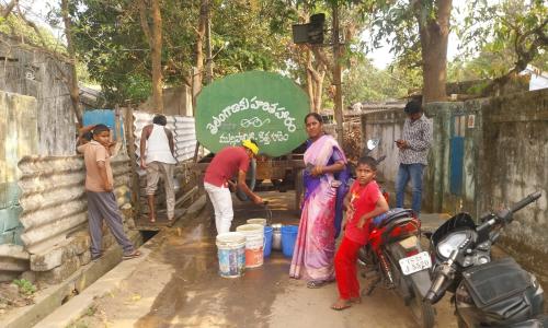తెలుగు వెలుగు టీవీ - వార్తలు / కొత్తగూడెం : కొత్తగూడెం (కార్పొరేషన్) కార్పొరేషన్ పరిధిలోని రామవరం లో నెలకొన్న ఎద్దడికి యుద్ధ ప్రాతిపదికన చర్యలు తీసుకోని తక్షణమే ఇంటింటికి మంచి నీళ్ళు అందించాలని 16వ డివిజన్ కార్పొరేటర్ అధికారులకు విజ్ఞప్తి చేశారు. ఆదివారం ట్యాంకర్ల ద్వారా నీళ్లు అందించి పద్మ మాట్లాడుతూ కొత్త పైపుల ద్వారా నీటిని అందించడంలో కొంత జాప్యం జరుగుతుందని, కానీ ఎండాకాలం దృశ్య ప్రజలు నీటికి ఇబ్బందులు పడుతున్నారని ఆన్నారు. అధికారులు ఇది గమనించాలని వారికి విజ్ఞప్తి చేశారు. జనాభాకు తగ్గట్టుగా కార్పొరేషన్ లో నీటి ట్యాంకర్లు లేకపోవడం వల్ల ప్రత్యామ్నాయంగా మంచినీళ్ళను అందించలేకపోవడం బాధాకరమైనదని అన్నారు.దీన్ని దృష్టిలో పెట్టుకొని అధికారులు ప్రత్యామ్నాయ చర్యలు తీసుకోవాల్సిన అవసరం ఉందని తెలిపారు. అన్ని వార్డుల్లో ఉన్న హ్యాండ్ పంపులు, మినీ వాటర్ బోర్లు ఉపయోగంలోకి తేవాలని వారు అధికారులకు విజ్ఞప్తి చేశారు. 16వ డివిజన్లో అవసరం ఉన్న చోట టాంకర్ల ద్వారా మంచినీరు అందించడం జరిగిందని అన్నారు. ప్రజల అవసరాలకు తగ్గట్టుగా టాంకర్లు లేవని అన్నారు. 125 కోట్లతో చేపట్టిన మిషన్ భగీరథ పనులను త్వరితగతన పూర్తిచేసి ప్రతి ఇంటికి మంచినీళ్లు అందించాలని లక్ష్యంతో స్థానిక శాసనసభ్యులు కూనం నేని సాంబశివరావు అధికారులను ఆదేశించినట్లు ఆమె తెలిపారు.వీరి వెంట మాజీ మున్సిపల్ ప్లోర్ లీడర్ మునగడప వెంకటేశ్వర్లు, పంపు డ్రైవర్ జి శంకర్, రాకేష్ ,చారి ,సాయి తదితరులు పాల్గొన్నారు