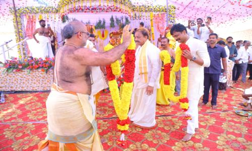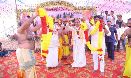 తెలుగు వెలుగు టీవీ - వార్తలు / కొత్తగూడెం : పాల్వంచ పట్టణంలోని శ్రీనివాసగిరి కాలనీలో ఉన్న శ్రీ వెంకటేశ్వర స్వామి దేవాలయంలో ఘనంగా నిర్వహించిన శ్రీనివాస కళ్యాణ మహోత్సవ కార్యక్రమంలో తెలంగాణ రాష్ట్ర రెవెన్యూ, గృహ నిర్మాణ, సమాచార మరియు పౌర సంబంధాల శాఖ మంత్రి పొంగులేటి శ్రీనివాసరెడ్డి సతీసమేతంగా పాల్గొన్నారు. ఈ కార్యక్రమంలో తెలంగాణ రాష్ట్ర వ్యవసాయ, మార్కెటింగ్, సహకార, జౌళి శాఖ మంత్రి తుమ్మల నాగేశ్వరరావు కూడా పాల్గొన్నారు.ఈ సందర్భంగా ఆలయానికి విచ్చేసిన మంత్రివర్యులకు ఆలయ నిర్వాహకులు, అర్చకులు సంప్రదాయబద్ధంగా పూర్ణకుంభంతో స్వాగతం పలికారు. అనంతరం మంత్రులు ఇద్దరూ శ్రీ వెంకటేశ్వర స్వామి వారిని దర్శించుకుని ప్రత్యేక పూజలు నిర్వహించి స్వామి వారి ఆశీస్సులు పొందారు.ఈ కార్యక్రమం భక్తి వాతావరణంలో వైభవంగా నిర్వహించబడింది.తదనంతరం నిర్వహించిన శ్రీనివాస కళ్యాణ మహోత్సవంలో మంత్రులు ఇద్దరూ భక్తులతో కలిసి కార్యక్రమాన్ని భక్తి పరవశంతో వీక్షించారు. ఈ సందర్భంగా ఆలయ అర్చకులు స్వామి వారి తీర్థప్రసాదాలు మరియు ఆశీర్వాదాలను మంత్రివర్యులకు అందజేశారు.ఈ సందర్భంగా మంత్రి పొంగులేటి శ్రీనివాసరెడ్డి మాట్లాడుతూ శ్రీనివాసగిరి గుట్ట ప్రాంతాన్ని పర్యాటక రంగంగా అభివృద్ధి చేయడానికి చర్యలు తీసుకుంటామని తెలిపారు. ప్రకృతి వనంలో ఉన్న ఈ పవిత్ర క్షేత్రాన్ని అటవీశాఖ సహకారంతో అభివృద్ధి చేసి గొప్ప ఈకో టూరిజం కేంద్రంగా తీర్చిదిద్దేందుకు కృషి చేస్తానన్నారు. రాష్ట్ర ప్రజలందరూ సుఖశాంతులతో ఉండాలని శ్రీ వెంకటేశ్వర స్వామి వారిని వేడుకున్నట్లు తెలిపారు.మంత్రి తుమ్మల నాగేశ్వరరావు మాట్లాడుతూ ఇలాంటి ఆధ్యాత్మిక కార్యక్రమాలు సమాజంలో భక్తి భావాన్ని, ఐక్యతను పెంపొందించడంలో ముఖ్య పాత్ర పోషిస్తాయని పేర్కొన్నారు. శ్రీ వెంకటేశ్వర స్వామి వారి కృపతో రాష్ట్ర ప్రజలందరూ ఆయురారోగ్యాలతో, సుఖశాంతులతో ఉండాలని ప్రార్థించారు.ఈ కార్యక్రమంలో స్థానిక ప్రజాప్రతినిధులు, ఆలయ కమిటీ సభ్యులు, అర్చకులు మరియు పెద్ద సంఖ్యలో భక్తులు పాల్గొన్నారు.