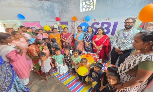 తెలుగు వెలుగు టీవీ - వార్తలు / కొత్తగూడెం : పాల్వంచ మరియు కొత్తగూడెం ప్రాజెక్ట్ ల పరిధిలో పాలకోయతండా మరియు రామవరం -9 అంగన్వాడీ కేంద్రాల కు ఎస్బిఐ పాన్ ఇండియా సిఎస్సార్ యాక్టివిటీస్ లో భాగంగా తెలంగాణ రాష్ట్ర ఎస్బీఐ ఆధ్వర్యం లో అంగన్వాడీ కేంద్రం లోని చిన్నారులకు ఆటవస్తువులు , జారుడు బల్లలు, వాటర్ఫిల్టర్లు ఎల్ఈడి టీవీలు , రైస్ కుక్కర్లు, ప్లేట్లు గ్లాసులు ,స్కూల్ బ్యాగులు , వర్క్ బుక్స్ , పెన్సిల్స్ , కలర్ పెన్సిల్స్ మొదలగు వస్తువులను అందజేశారు . ఈ కార్యక్రమం మిత్రా హోలిస్టిక్ హెల్త్ సొసైటీ , చైర్మన్ హైదరాబాదుకు చెందిన లక్ష్మీరెడ్డి ఆధ్వర్యంలో జరిగింది . జిల్లా సంక్షేమాధికారి స్వర్ణలత లేనినా మాట్లాడుతూ ఎస్బిఐ పాన్ ఇండియా వారు తమ సిఎస్సార్ నిధుల నుండి ఒక్కొక్క కేంద్రానికి లక్ష రూపాయల విలువైన సామగ్రి ని అందించటం అభినందనీయం అన్నారు . వీటి ద్వారా పిల్లల్లో మేధాశక్తి పెరుగుతుందని మరియు పిల్లలకు స్కూల్ పట్ల ఆసక్తి పెరుగుతుందని అన్నారు. ఈ కార్యక్రమంలో ఎస్బిఐ బ్రాంచ్ మేనేజర్ సిల్ క్యాంపస్ భావ్ సింగ్ ,రుద్రంపూర్ బ్రాంచ్ మేనేజర్ వెంకట రమణ , జిల్లా సంక్షేమాధికారి స్వర్ణలత లెనిన, సీడీపీఓ లు ప్రసన్న , పద్మశ్రీ కార్పొరేటర్లు శ్యామల , కంచర్ల హిమశ్రీ , అంగన్వాడీ టీచర్లు జ్యోతి , పద్మ , చిన్నారుల తల్లులు తదితరులు పాల్గొన్నారు .