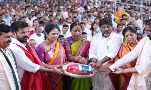 తెలుగు వెలుగు టీవీ - వార్తలు / కొత్తగూడెం : కమనీయం సీతారాముల కళ్యాణం.హాజరైన ఉప ముఖ్యమంత్రి మల్లు భట్టి విక్రమార్క, మంత్రులు కొండా సురేఖ, పొంగులేటి శ్రీనివాస్ రెడ్డి , తుమ్మల నాగేశ్వరరావు , వాకిటి శ్రీహరి, ఎమ్మెలేలు కోరం కనకయ్య, పాయం వెంకటేశ్వర్లు, తెల్లం వెంకటరావు, ఎంపీలు బలరాం నాయక్, వేం నరేందర్ రెడ్డి, టీపీసీసీ జనరల్ సెక్రటరీ నాగా సీతారాములు.కళ్యాణ మహోత్సవానికి భారీగా తరలివచ్చిన భక్తులు, శ్రీరామ నవమి పురస్కరించుకొని దక్షిణ అయోధ్య భద్రాచలంలో శ్రీ సీతారాముల కళ్యాణ మహోత్సవాన్ని వైభవంగా నిర్వహించారు. ఈ సందర్భంగా దేవాలయాన్ని సర్వాంగ సుందరంగా ముస్తాబు చేసి రాములవారి కళ్యాణం కన్నుల పండుగ చేశారు. సీఎం రేవంత్ రెడ్డి స్వామి వారికి పట్టు వస్త్రాలు, తలంబ్రాలు తీసుకోని వచ్చారు.సీఎం కు స్వాగతం పలికిన నాగా సీతారాములు ముందుగా ఐటీసీ ప్రాంగణంలో ఏర్పాటు చేసిన హెలిప్యాడ్ లో దిగిన సీఎం రేవంత్ రెడ్డి కి టీపీసీసీ జనరల్ సెక్రటరీ నాగా సీతారాములు శాలువాతో సత్కరించి, పుష్పగుచ్చం ఇచ్చి ఆహ్వానం పలికారు. ఈ సందర్బంగా సీఎం ఆయన్ని ఆత్మీయంగా పలకరించి కుశలప్రశ్నలు వేశారు.