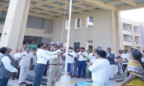 ప్రజా పాలన దినోత్సవం సందర్భంగా ఐ డి ఓ సి కార్యాలయంలో జాతీయ పతాకాన్ని ఎగరవేసిన జిల్లా కలెక్టర్ జితేష్ వి పాటిల్
