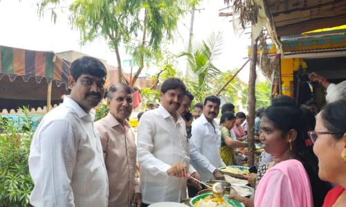 తెలుగు వెలుగు టీవీ - వార్తలు / కొత్తగూడెం : * కొత్తగూడెం పట్టణంలోని వివిధ ప్రాంతాల్లో నెలకొన్న వినాయక మండపాల్లో అన్న ప్రసాద స్వీకరణ కార్యక్రమం చేపట్టారు భక్తులందరూ విరివిగా పాల్గొని అన్న ప్రసాదం స్వీకరించి నిర్వాహకులను అభినందించారు 35వ వార్డులోని బండారి యూత్ 24వ వార్డులోని లక్ష్మీ గణపతి యూత్ మరియు గాజులరాజం బస్తీ పోచమ్మ దేవాలయం లో జరిగిన అన్న ప్రసాద కార్యక్రమంలో పలువురు హాజరై తమ వంతుగా సేవలందించారు