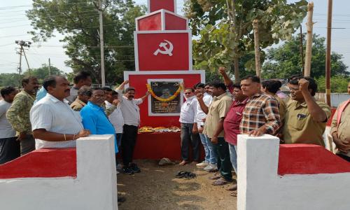 తెలుగు వెలుగు టీవీ - వార్తలు / కొత్తగూడెం : రామవరం ఆటో ఓనర్స్ అండ్ డ్రైవర్స్ ఏఐటియుసి యూనియన్ ఆధ్వర్యంలో అమరజీవి మహమ్మద్ దాదా స్తూపం దగ్గర 58వ జయంతి సందర్భంగా పూలమాలలు వేసి ఘనంగా నివాళులు అర్పించారు, ఈ కార్యక్రమానికి ముఖ్య అతిథులుగా విచ్చేసిన సిపిఐ జిల్లా కార్యవర్గ సభ్యులు సలీం ఆటో వర్కర్స్ యూనియన్ రాష్ట్ర అధ్యక్షులు కంచర్ల జములయ్య మాట్లాడుతూ మొహమ్మద్ దాదా గారి లేని లోటు తీర్చలేనిదని ఆటో వర్కర్స్ సమస్యలు తన సమస్యలుగా భావించి ముందుండి పరిష్కరించేవాడని ఆటో వర్కర్స్ సమస్యలు పరిష్కరించాలని అనేక పోరాటాలు చేసి ఆనాటి ప్రభుత్వాలు తనపై అనేక కేసులు నమోదు చేసి జైలుకు సైతం పంపించారని కుల మతాలకు అతీతంగా సేవలు చేసేవాడని ముస్లిం అయినప్పటికీ ఆటో యాక్సిడెంట్లు ఎక్కువ అవుతున్నాయని రామవరం ఆటో స్టాండ్ దగ్గర అమ్మవారి గుడిని ప్రతిష్టించడం గర్వకారణమని నేటి సమాజానికి ఆదర్శంగా నిలబడ్డాడని మొహమ్మద్ దాదా ఆశ సాధన కోసం ప్రతి ఒక్కరూ కృషి చేయాలని అదే తనకు ఇచ్చే నిజమైన నివాళులని వారు అన్నారు ఈ కార్యక్రమంలో ఆటో యూనియన్ రాష్ట్ర కార్యవర్గ సభ్యులు మర్రి కృష్ణ, హరినాథ్, బడుగు భాస్కర్, జనార్ధన్, జలీల్, అబ్బులు, బత్తుల సత్యనారాయణ,పాషా, హమీద్, జానీ,అజీమ్,గురుమూర్తి, అనీఫ్, సలీం, కన్నా, హబీబ్, యూసుఫ్,పాటి మోహన్, కనుకుంట్ల శ్రీను, రవి, ముస్తఫా,భాష, జంజర్ల శివ, తదితరులు పాల్గొన్నారు