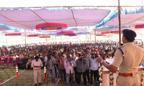 తెలుగు వెలుగు టీవీ - వార్తలు / కొత్తగూడెం : జాతీయ రోడ్డు భద్రతా మాసోత్సవాలలో భాగంగా కొత్తగూడెం సబ్ డివిజన్ పోలీసుల ఆధ్వర్యంలో ప్రకాశం స్టేడియంలో వాహనదారులకు అవగాహనా కార్యక్రమం ఏర్పాటు చేయడమైనది. జిల్లా ఎస్పీ రోహిత్ రాజు ఐపీఎస్ గారి ఆదేశాల మేరకు కొత్తగూడెం డిఎస్పి రెహమాన్ గారి సూచనలతో సబ్ డివిజన్ పోలీసులు వాహనదారులకు,విద్యార్థినీ,విద్యార్థులకు ముఖ్యంగా ఆటోడ్రైవర్లకు జాతీయ రోడ్డు భద్రత మాస ఉత్సవాల సందర్భంగా భారీ కార్యక్రమాన్ని చేపట్టారు.ఈ కార్యక్రమంలో సుమారు 2000 మంది పాల్గొన్నారు.ఎస్పీ గారితో పాటు కొత్తగూడెం డిఎస్పీ రెహమాన్,ఇల్లందు డిఎస్పీ చంద్రభాను,మణుగూరు డిఎస్పీ రవీందర్ రెడ్డి,పాల్వంచ డిఎస్పీ సతీష్ కుమార్,కొత్తగూడెం మున్సిపల్ కమీషనర్ శేషాంజనేయ స్వామి,జిల్లా రవాణాధికారి వెంకట రమణలు కూడా ఈ కార్యక్రమంలో పాల్గొన్నారు.ఈ కార్యక్రమానికి ముఖ్యఅతిథిగా హాజరైన జిల్లా ఎస్పీ రోహిత్ రాజు ఐపిఎస్ గారు మాట్లాడుతూ ప్రతి ఒక్క వాహనదారుడు రోడ్డు భద్రతా నియమాలను తప్పనిసరిగా పాటించాలని సూచించారు. ముందుగా విద్యార్థులతో కలిసి అక్కడ రోడ్డు భద్రతా నియమాలను సూచిస్తూ ఏర్పాటు చేసిన స్టాల్స్ ను సందర్శించారు.నిర్లక్ష్యంగా వాహనాలు నడపడం ద్వారా దేశంలో నిత్యం రోడ్డు ప్రమాదాలు సంభవించి చాలామంది తమ విలువైన ప్రాణాలను కోల్పోతున్నారని అన్నారు.వాహనదారులందరూ హెల్మెట్,సీట్ బెల్ట్ లు ధరించి వాహనాలను నడపాలని కోరారు.ర్యాష్ డ్రైవింగ్,మద్యం సేవించి వాహనాలు నడపడం,ఓవర్ లోడ్,రాంగ్ రూట్లో ప్రయాణించడం లాంటి తప్పిదాలతో ఎక్కువగా రోడ్డు ప్రమాదాలు సంభవిస్తున్నాయని తెలిపారు.ఈ కార్యక్రమంలో సుమారుగా 500 కు పైగా ఆటో డ్రైవర్లు తమ వాహనాలతో సహా హాజరయ్యారు